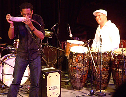 Eric Calmes and guitarist Andro Biswane in string-duel.