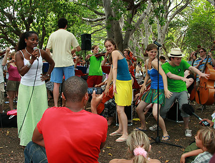 Mijn geweldige koortje leerde in no-time de Papiamentse woorden van het refrein van ‘Wow’i Kariño’. Nu nog leren dansen...
