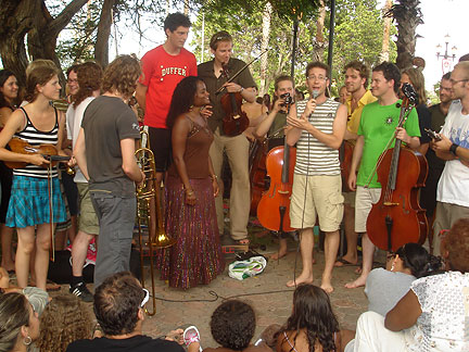 Het afscheid. Over 4 uur zou het orkest weer op het vliegtuig stappen terug naar Nederland. Het einde van 3 weken prachtige muziek, gemaakt door bijzondere mensen.